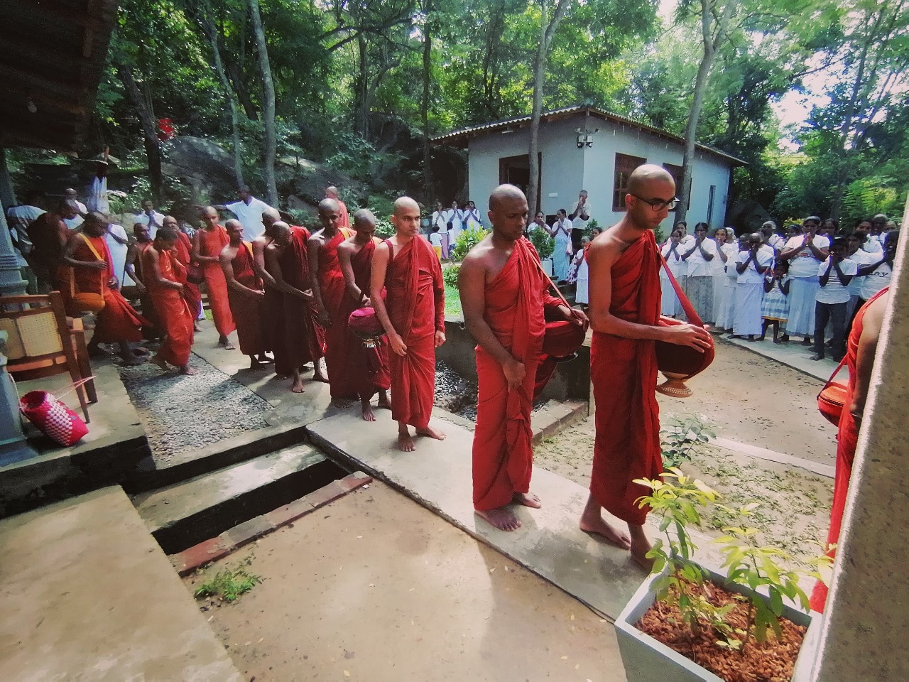 The Mathanga Aranya Senasana Monastery in Sri Lanka is a serene retreat, where monks and seekers immerse themselves in meditation, study, and the preservation of Buddhist wisdom amidst the island's natural beauty.
